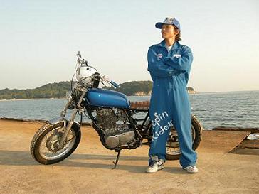 次は青SR400カスタムの○木君!